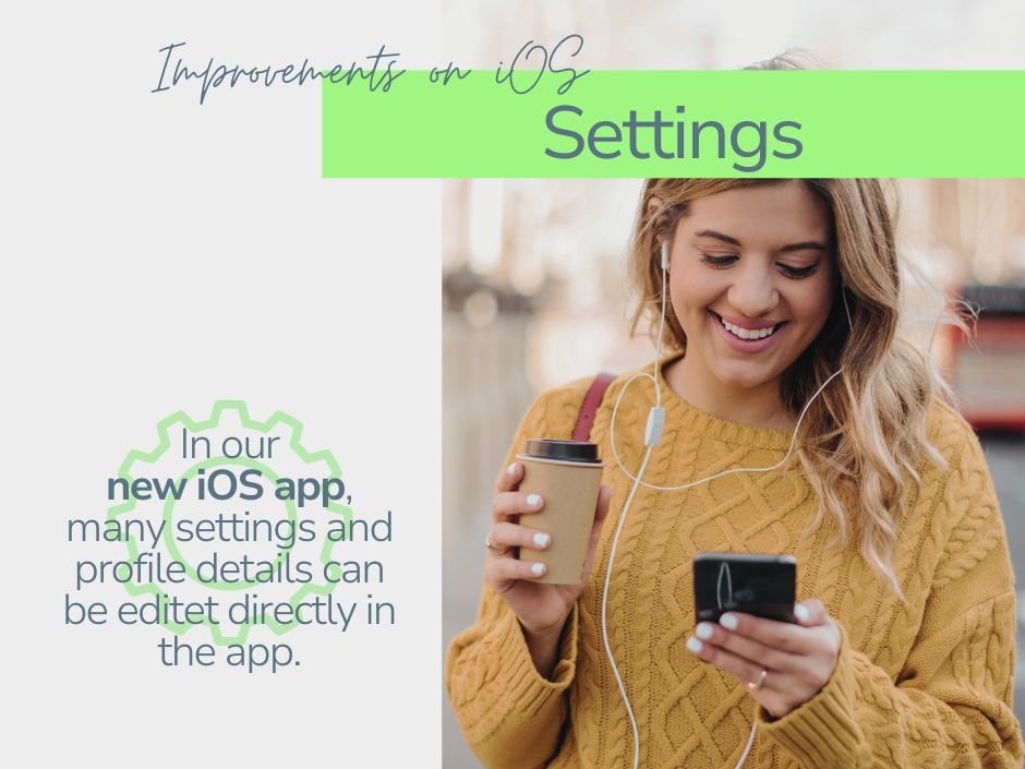Many settings and profile details used to be in a separate browser view. The new iOS app integrates them into the flow and design of the app – for a seamless experience. This includes changing your payment information, viewing your invoices and changing your login data.